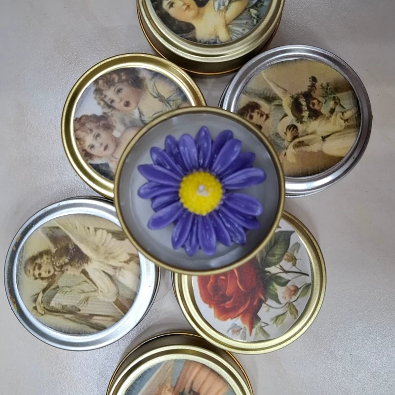 شمع بابونه در ظرف درب دار (رنگ قابل سفارش )