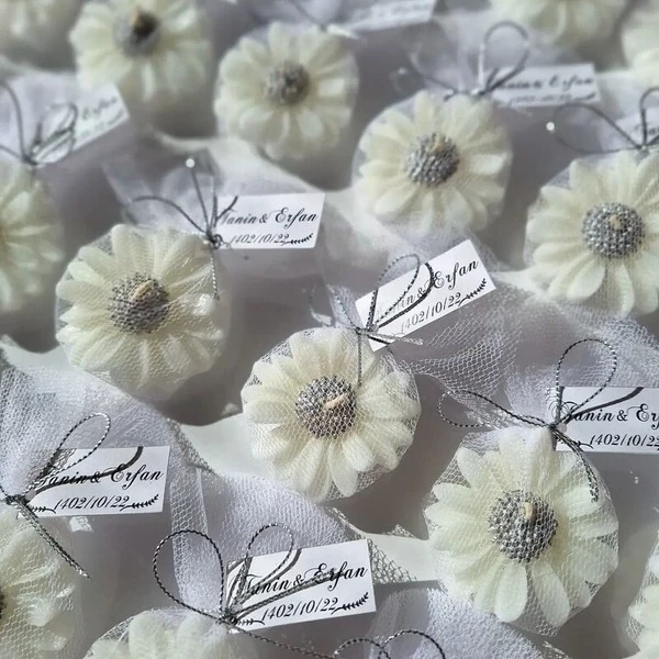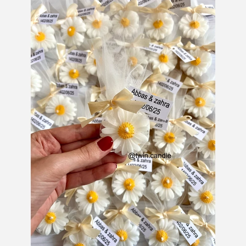 گیفت شمع بابونه به همراه تور و سیخ چوبی