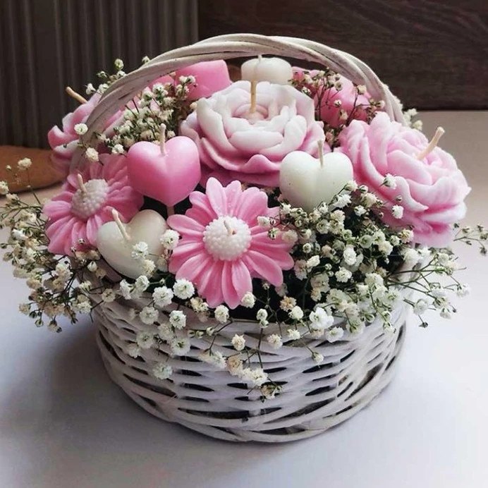 سبد گل شمع ماندگار