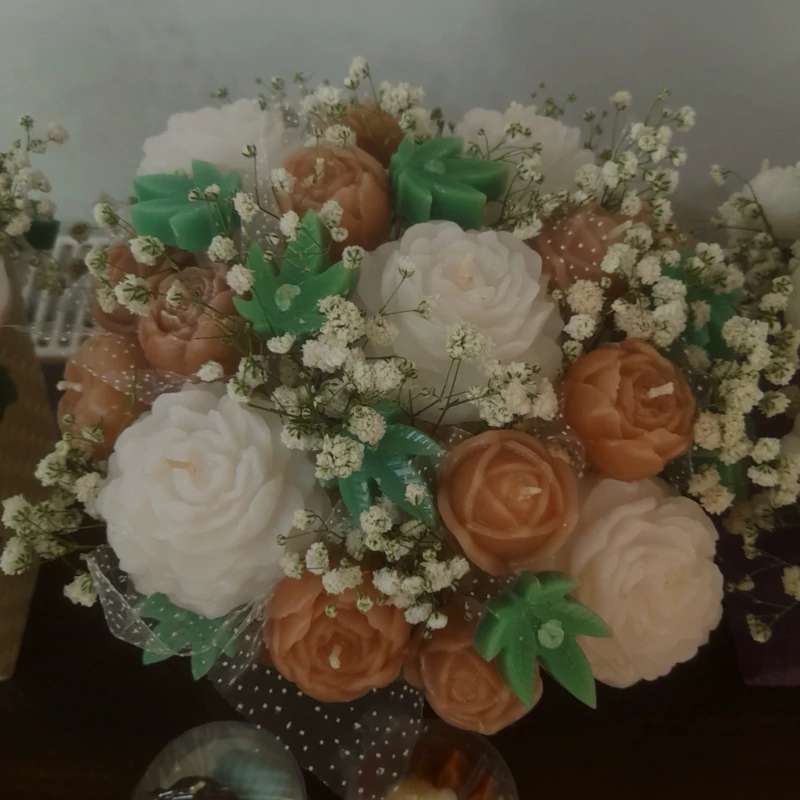 به غرفه مارگریت خوش اومدید باکس گل شمع شامل حدود 35 عدد شمع مختلفه و ابعاد بزرگی داره رنگ بندی و مدل گل ها سفارشی هست